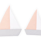 Die Segelboote sind zwischen 36 und 42 cm groß, bestehen Aussen aus 100% Baumwolle und sind in der Waschmaschine waschbar. Damit sie stabil und steif an der Wand hängen sind sie von Innen zusätzlich mit leichtem Vlies verstärkt. Inhalt: 2 Segelboote.